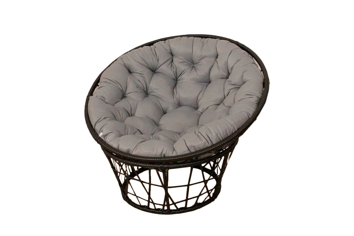 Преимущество кресла заключаются в материалах, из которых оно сделано. Каркас выполнен из стали, а оплетка и декор из искусственного ротанга темно-коричневого цвета. Искусственный ротанг не портиться от влаги, не теряет цвет на солнце, и в целом выдерживает большие нагрузки – конкретно эта модель рассчитана на нагрузку до 150 кг.